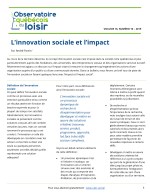 Ce bulletin, publié par l’Observatoire québécois du loisir (OQL), propose de faire un bref tour de piste de l’innovation sociale en faisant quelques liens avec l’impact et l’impact social. Par contre, ce document n’a pas été produit comme les cinq précédents à partir de réflexions récoltées lors d’une activité quelconque.